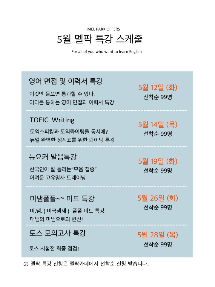 멜팍어학원 특강은 멜팍어학원 수강생들이면 모두 들으실수 있습니다.