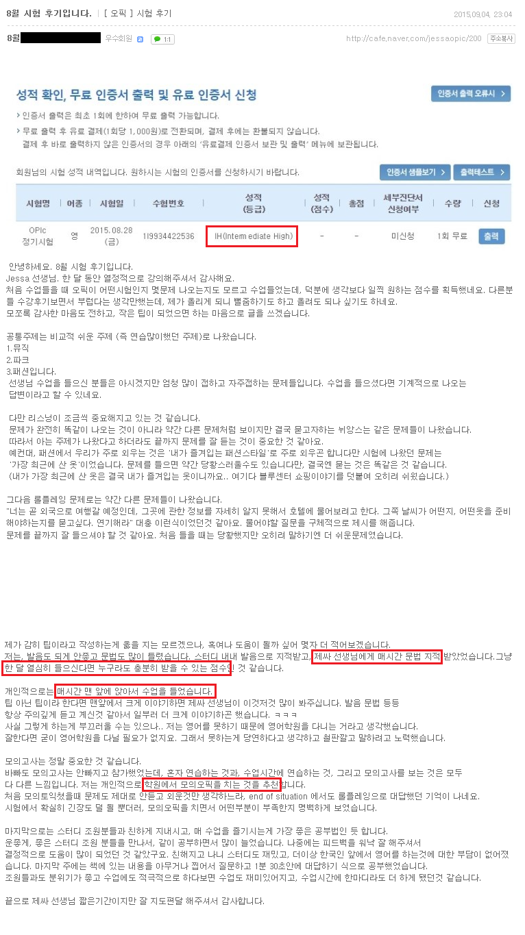 오픽 | (대구오픽 IH후기) 한달 열심히 듣는다면 누구라도 충분히 받을수 있는 점수!! 페이지 정보 작성자 MELPARK 작성일15-09-18 09:10 조회4,158회 댓글0건 이전글 다음글 목록 본문 (클릭 하시면 크게 보실 수 있습니다.) 수강생 후기 입니다. 더 많은 후기는 우측 카페 링크 가입 후 보실 수 있습니다. 이전글 다음글 목록