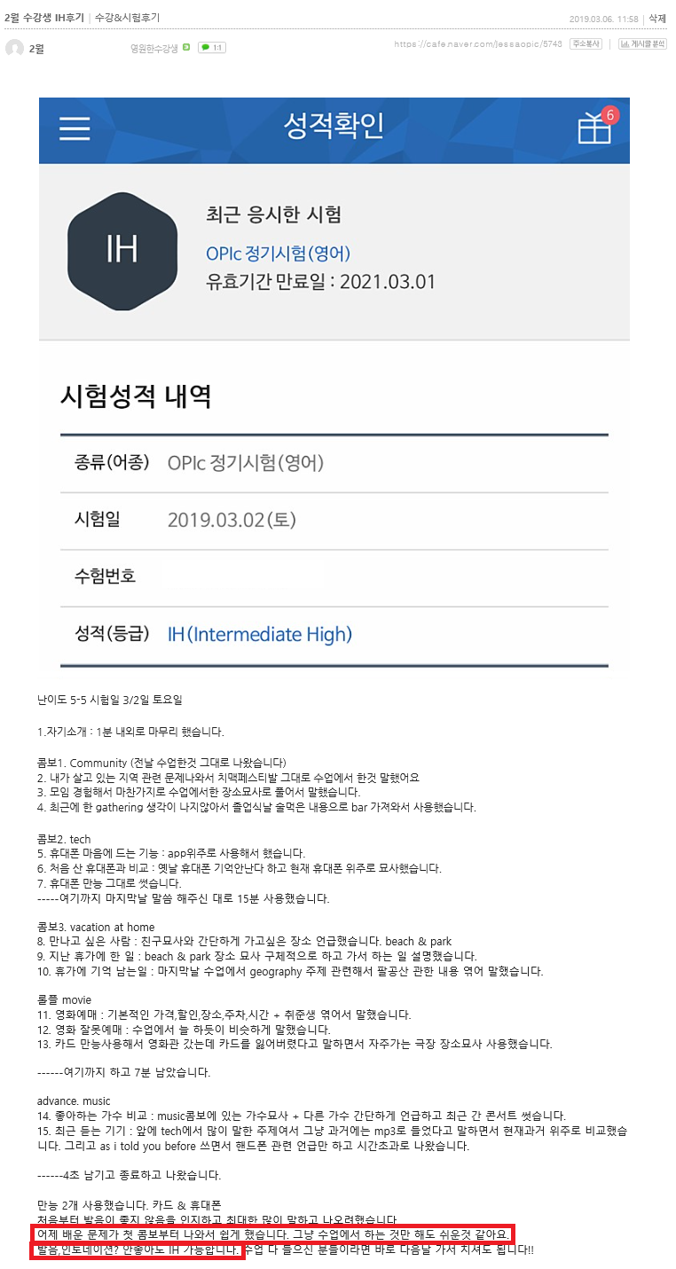 발음,인토네이션? 안좋아도 IH 가능합니다. 수업 다 들으신 분들이라면 바로 다음날 가서 치셔도 됩니다!!