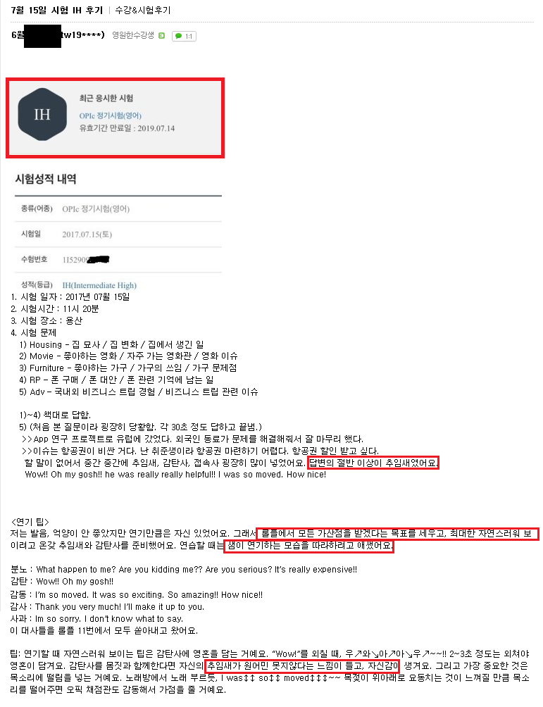 오픽 | (대구오픽 IH후기) 오픽 IH~! 고득점 방법 >_< 페이지 정보 작성자 MELPARK 작성일17-08-09 19:36 조회3,655회 댓글0건 이전글 다음글 목록 본문 (클릭 하시면 크게 보실 수 있습니다.) 수강생 후기 입니다.더 많은 후기는 우측 카페 링크 가입 후 보실 수 있습니다. 이전글 다음글 목록