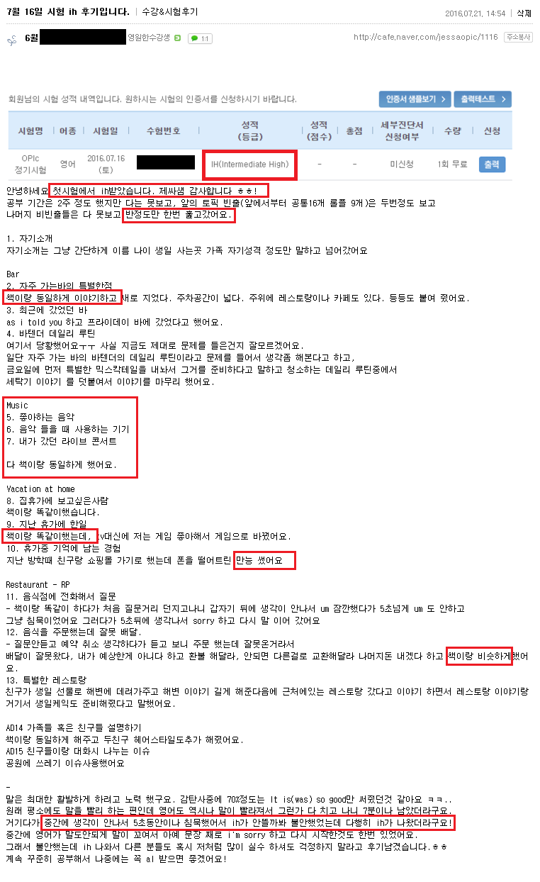 오픽 | (대구오픽 IH후기)실수하고 불안했는데... IH 받아서 다행에예요~! 페이지 정보 작성자 MELPARK 작성일16-07-22 15:15 조회3,906회 댓글0건 이전글 다음글 목록 본문 (클릭 하시면 크게 보실 수 있습니다.) 수강생 후기 입니다. 더 많은 후기는 우측 카페 링크 가입 후 보실 수 있습니다. 이전글 다음글 목록