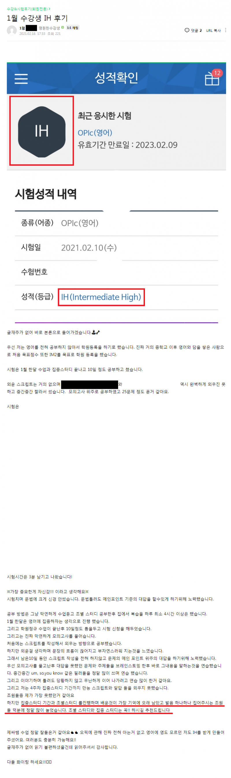 오픽 | (대구오픽 IH후기) 집중스터디, 조별스터디는 필수 중의 필수!! 페이지 정보 작성자 MELPARK 작성일21-03-05 14:42 조회8,177회 댓글0건 이전글 다음글 목록 본문 #멜팍어학원 #제싸오픽 #대구오픽 #대구오픽학원 이전글 다음글 목록