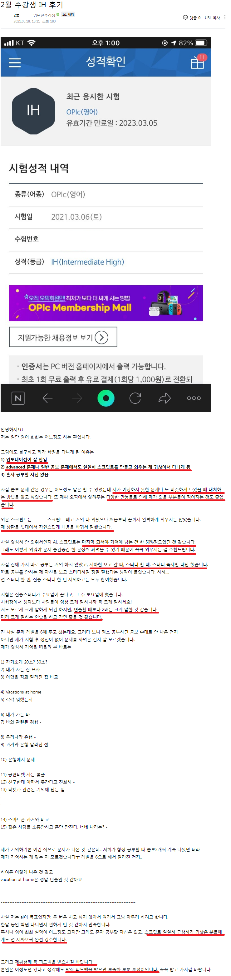 오픽 | (대구오픽 IH후기) 만능 스크립트로 틈틈히 공부하고 오픽 고득점 받았어요! 페이지 정보 작성자 MELPARK 작성일21-04-30 18:55 조회5,448회 댓글0건 이전글 다음글 목록 본문 #멜팍어학원 #제싸오픽 #대구오픽 #대구오픽학원 이전글 다음글 목록